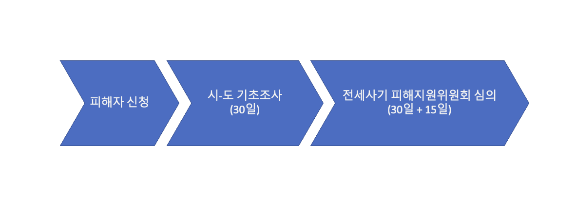 전세사기 피해자로 인정받으려면 우선 피해 임차인이 시-도에 신청해야합니다. 이후 시-도는 신청한 임차인이 전세사기 특별법 지원 대상에 해당하는지 6가지 요건에 대해 기초조사를 진행합니다. 시0도 조사 기간은 30일 가량입니다.